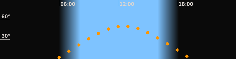| Höchster Stand (Kulmination) | 12:35 Uhr (h = 50,3°) |
