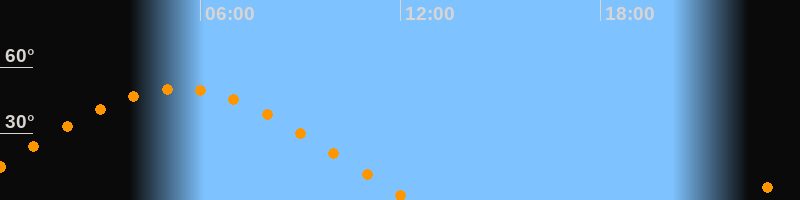 | Aufgang | 22:18 Uhr im Osten (αAz = 71,7°) |