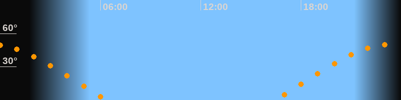 | Aufgang | 16:24 Uhr im Osten (αAz = 71,7°) |