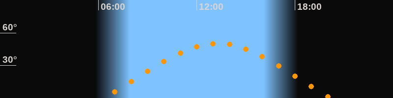 | Aufgang | 06:18 Uhr im Osten (αAz = 71,7°) |
