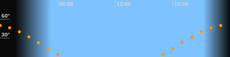 | Aufgang | 16:29 Uhr im Osten (αAz = 71,7°) |
