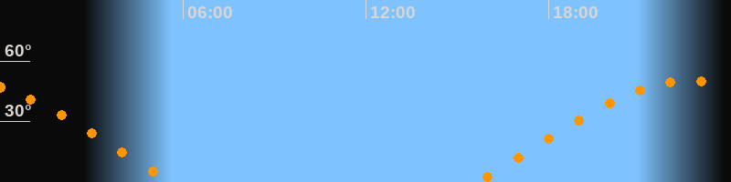 | Aufgang | 15:38 Uhr im Osten (αAz = 71,7°) |