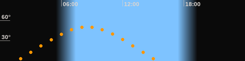 | Höchster Stand (Kulmination) | 08:30 Uhr (h = 50,3°) |