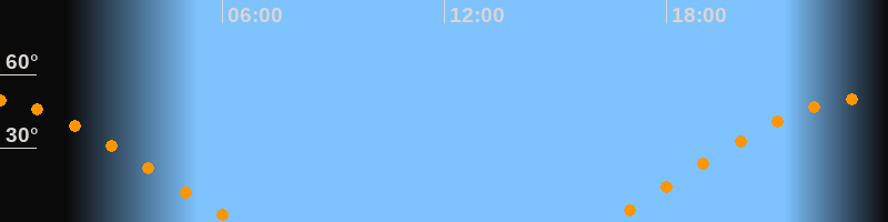 | Aufgang | 16:23 Uhr im Osten (αAz = 71,7°) |