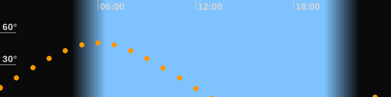 | Aufgang | 22:57 Uhr im Osten (αAz = 71,7°) |