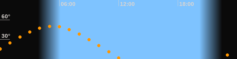 | Aufgang | 22:15 Uhr im Osten (αAz = 71,7°) |