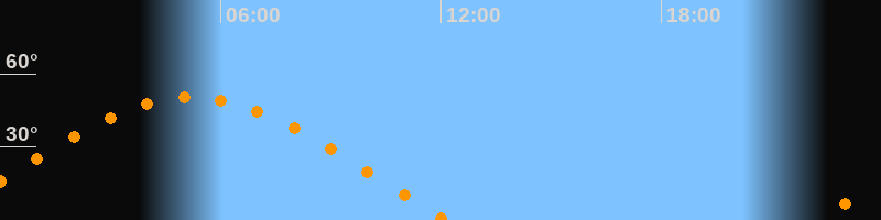 | Untergang | 12:11 Uhr im Westen (αAz = 288,3°) |