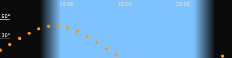 | Aufgang | 22:36 Uhr im Osten (αAz = 71,7°) |