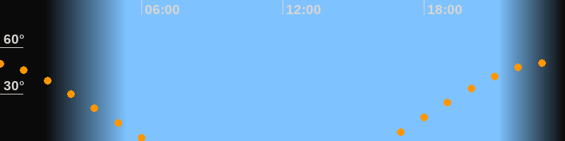 | Aufgang | 16:18 Uhr im Osten (αAz = 71,7°) |