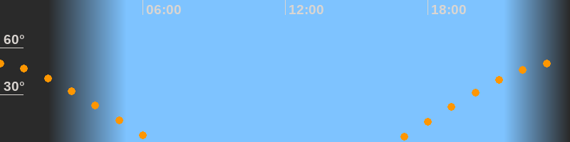| Aufgang | 16:33 Uhr im Osten (αAz = 71,7°) |