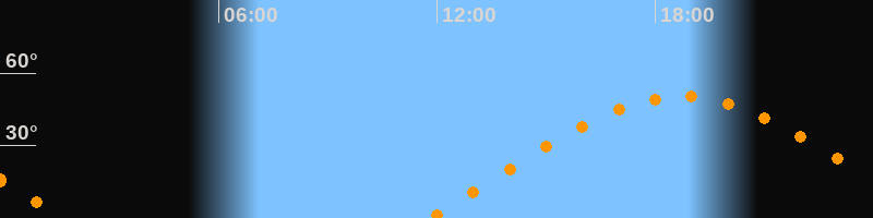 | Aufgang | 11:47 Uhr im Osten (αAz = 71,7°) |