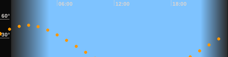 | Aufgang | 19:52 Uhr im Osten (αAz = 71,7°) |
