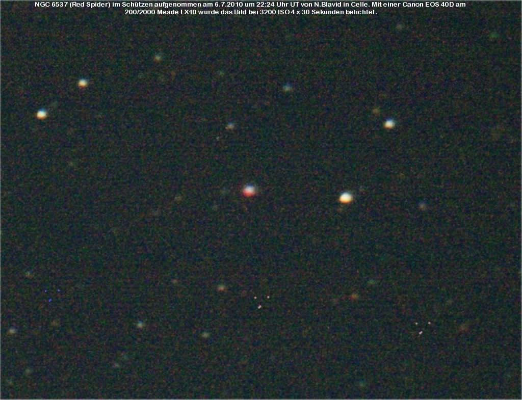 Der Red-Spider-Nebula (= Rote Spinne, wegen seiner Form) ist ein planetarischer Nebel um einen 11,8 mag hellen Zentralstern HD312582. Entdeckt wurde das Objekt am 15. Juli 1882 von Edward Pickering.