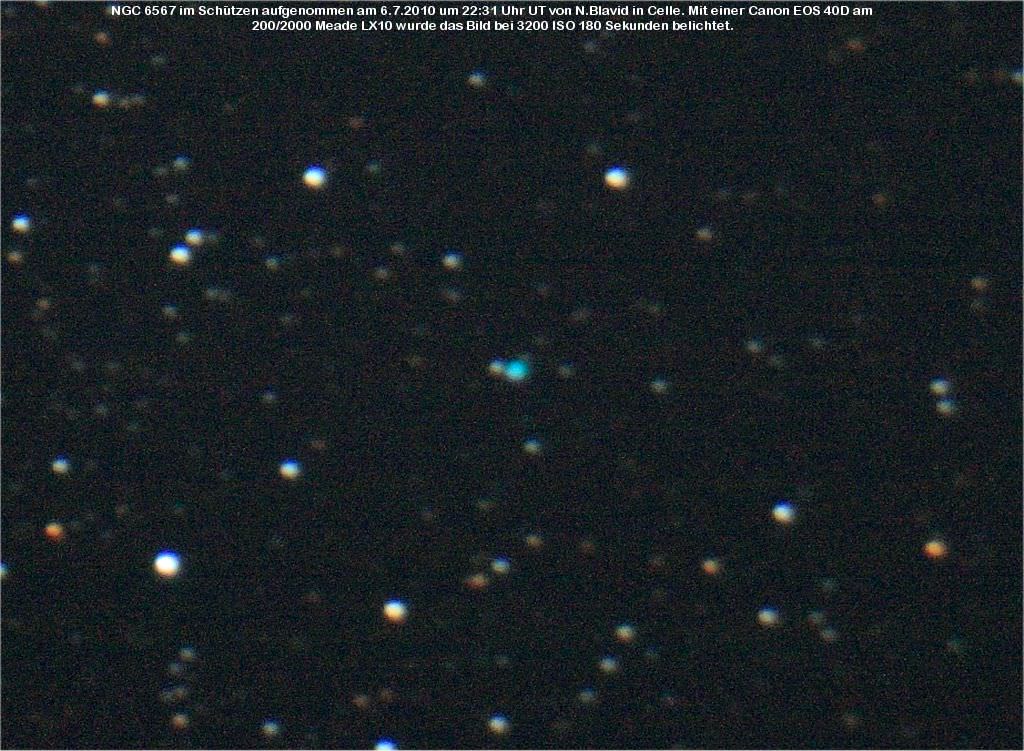 NGC 6567 ist ein planetarischer Nebel um einen 15,0 mag hellen Zentralstern. Entdeckt wurde das Objekt 1882 von Edward Pickering.