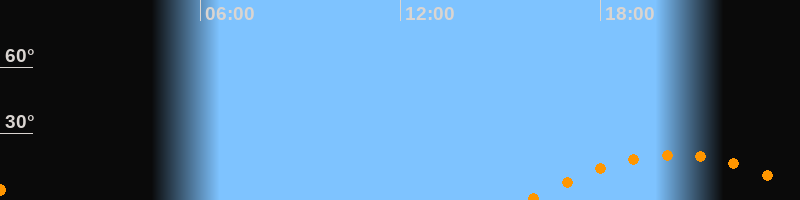 | Aufgang | 15:50 Uhr im Südosten (αAz = 120°) |