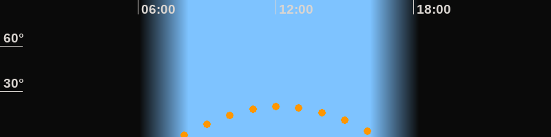 | Höchster Stand (Kulmination) | 12:11 Uhr (h = 20,3°) |