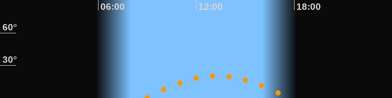 | Höchster Stand (Kulmination) | 13:16 Uhr (h = 20,3°) |