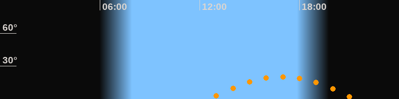 | Höchster Stand (Kulmination) | 16:57 Uhr (h = 20,3°) |