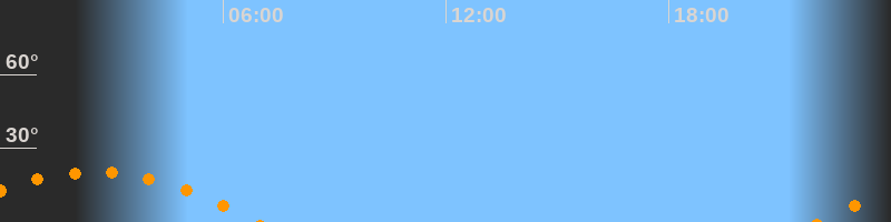 | Untergang | 06:55 Uhr im Südwesten (αAz = 240°) |