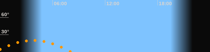 | Aufgang | 23:18 Uhr im Südosten (αAz = 120°) |