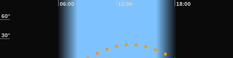 | Höchster Stand (Kulmination) | 13:23 Uhr (h = 21,1°) |