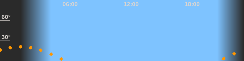 | Untergang | 06:28 Uhr im Südwesten (αAz = 241,2°) |