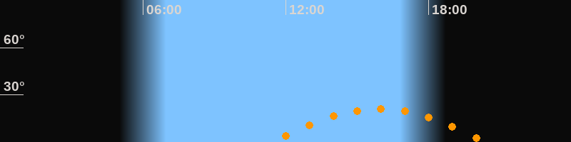 | Aufgang | 11:26 Uhr im Südosten (αAz = 118,8°) |