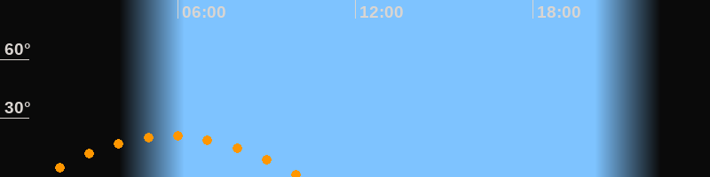 | Höchster Stand (Kulmination) | 05:45 Uhr (h = 21,1°) |