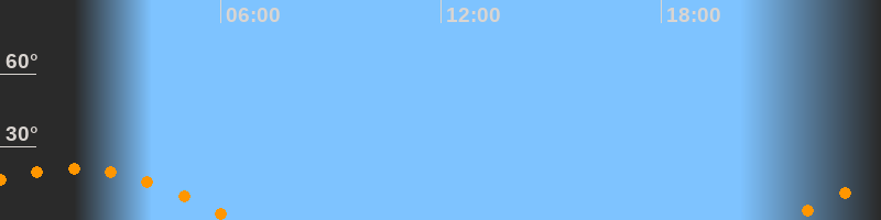 | Untergang | 06:24 Uhr im Südwesten (αAz = 241,2°) |