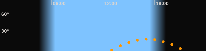 | Aufgang | 12:41 Uhr im Südosten (αAz = 118,8°) |
