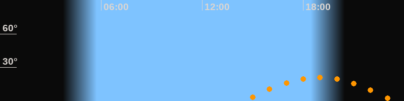 | Aufgang | 14:28 Uhr im Südosten (αAz = 118,8°) |