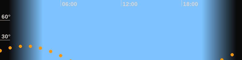 | Aufgang | 21:53 Uhr im Südosten (αAz = 118,8°) |