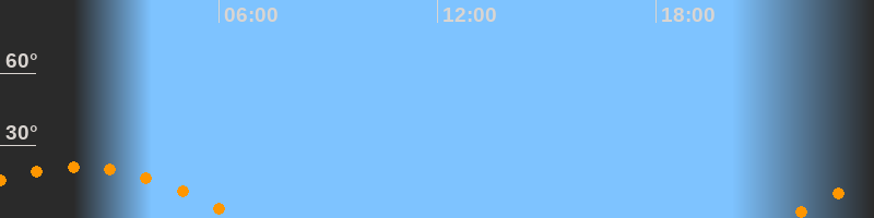 | Untergang | 06:35 Uhr im Südwesten (αAz = 241,2°) |