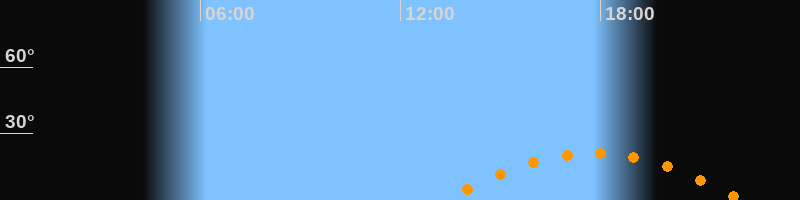 | Aufgang | 13:19 Uhr im Südosten (αAz = 118,8°) |