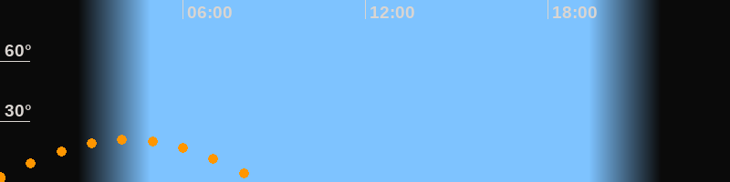 | Untergang | 08:38 Uhr im Südwesten (αAz = 241,2°) |