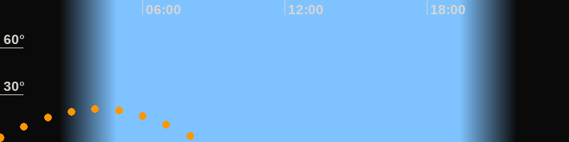 Aufgang23:33 Uhr im Südosten (αAz = 118,8°)