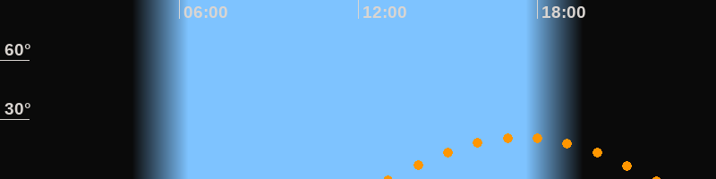 | Höchster Stand (Kulmination) | 17:28 Uhr (h = 21,1°) |