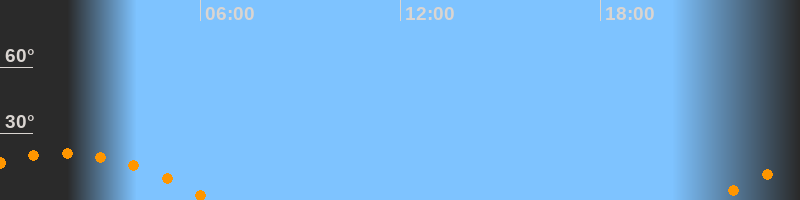 | Untergang | 06:21 Uhr im Südwesten (αAz = 241,2°) |