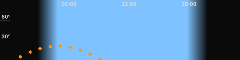 | Höchster Stand (Kulmination) | 05:46 Uhr (h = 21,1°) |