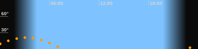 | Aufgang | 22:36 Uhr im Südosten (αAz = 118,8°) |