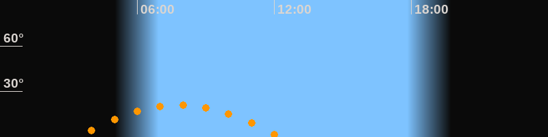 | Höchster Stand (Kulmination) | 07:48 Uhr (h = 21,1°) |