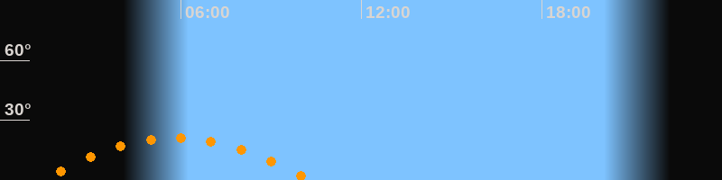 | Höchster Stand (Kulmination) | 05:50 Uhr (h = 21,1°) |