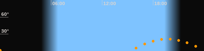 | Aufgang | 15:13 Uhr im Südosten (αAz = 118,7°) |