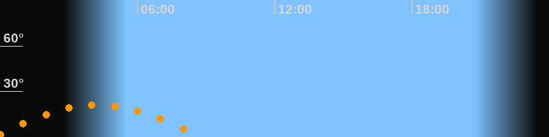 | Untergang | 08:43 Uhr im Südwesten (αAz = 241,3°) |