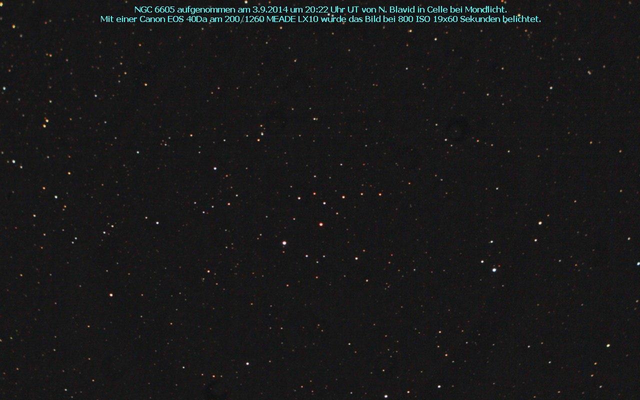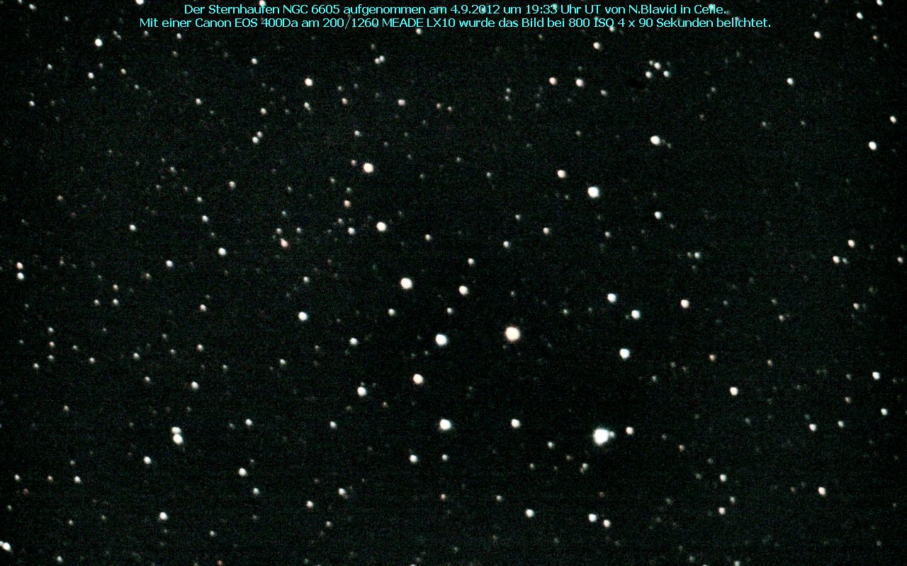 NGC 6605 ist ein ein offener Sternhaufen vom Typ ??. Entdeckt wurde das Objekt 1826 von John Herschel.
