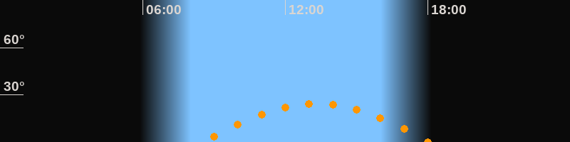| Höchster Stand (Kulmination) | 13:18 Uhr (h = 24,3°) |