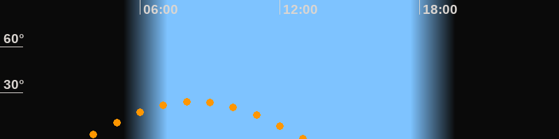 | Höchster Stand (Kulmination) | 08:20 Uhr (h = 24,3°) |