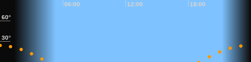 | Untergang | 04:37 Uhr im Südwesten (αAz = 246,6°) |