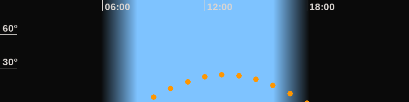 | Höchster Stand (Kulmination) | 13:12 Uhr (h = 24,3°) |