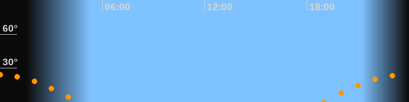 | Untergang | 04:35 Uhr im Südwesten (αAz = 246,6°) |